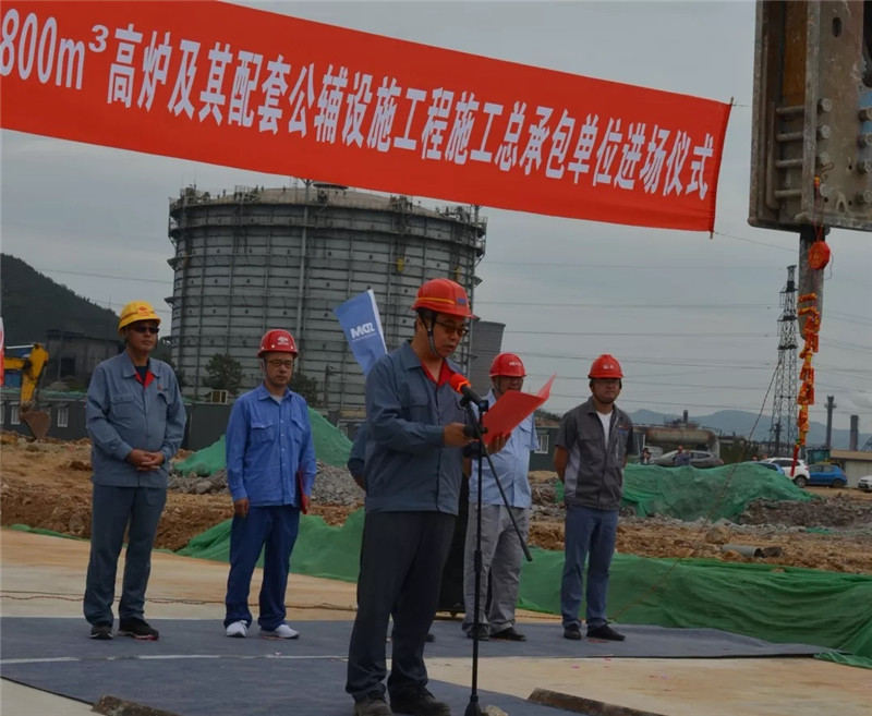 山冶設(shè)計(jì)黨委書記谷卓奇、萊蕪三控冶金建設(shè)監(jiān)理事務(wù)所經(jīng)理沈桂聯(lián)、中國二十冶集團(tuán)有限公司高爐項(xiàng)目部項(xiàng)目經(jīng)理任茂盛分別代表總承包單位、施工監(jiān)理、施工單位致辭,最后山鋼股份萊蕪分公司煉鐵廠黨委書記、高爐項(xiàng)目部經(jīng)理孫建設(shè)宣布:“山鋼股份萊蕪分公司新舊動(dòng)能轉(zhuǎn)換項(xiàng)目新建2×3800立方米高爐及其配套公輔設(shè)施工程施工總承包單位進(jìn)場(chǎng)!”