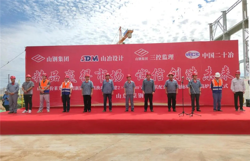 2020年8月25日,由山冶設(shè)計(jì)總承包的山鋼股份萊蕪分公司1#3800m3高爐工程舉行爐殼封頂儀式。山鋼股份萊蕪分公司新舊動(dòng)能轉(zhuǎn)換項(xiàng)目工程指揮部副總指揮李綱、副經(jīng)理田慶元,煉鐵廠經(jīng)理、高爐工程項(xiàng)目經(jīng)理部經(jīng)理張明,新舊動(dòng)能轉(zhuǎn)換項(xiàng)目工程指揮部高爐工程項(xiàng)目經(jīng)理部常務(wù)副經(jīng)理賈友劍及施工、監(jiān)理等相關(guān)單位領(lǐng)導(dǎo)出席了儀式,山東省冶金設(shè)計(jì)院股份有限公司黨委書記谷卓奇代表總承包單位發(fā)表講話。
