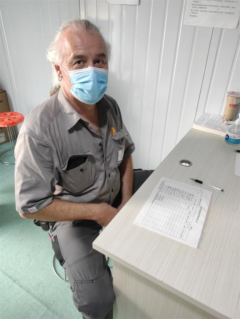 Olaf Mischur(音譯:奧樂夫)58歲來自德國,現服務于山鋼股份萊蕪分公司新舊動能轉換1號 3800m3高爐現場,主要負責指導TMT開鐵口機設備的安裝和調試工作。