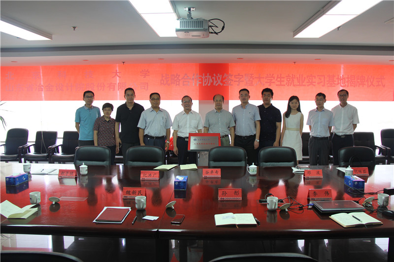 2019年7月23日,山冶設計與北京科技大學戰(zhàn)略合作框架協(xié)議簽字儀式暨北京科技大學大學生就業(yè)實習基地揭牌儀式在濟南舉行。北京科技大學土木與資源工程學院黨委書記紀洪廣,黨委副書記鄧波一行4人,公司董事長魏新民,黨委書記谷卓奇,副總經(jīng)理孫彤及相關科室人員出席了簽字儀式。