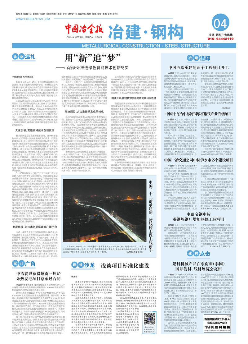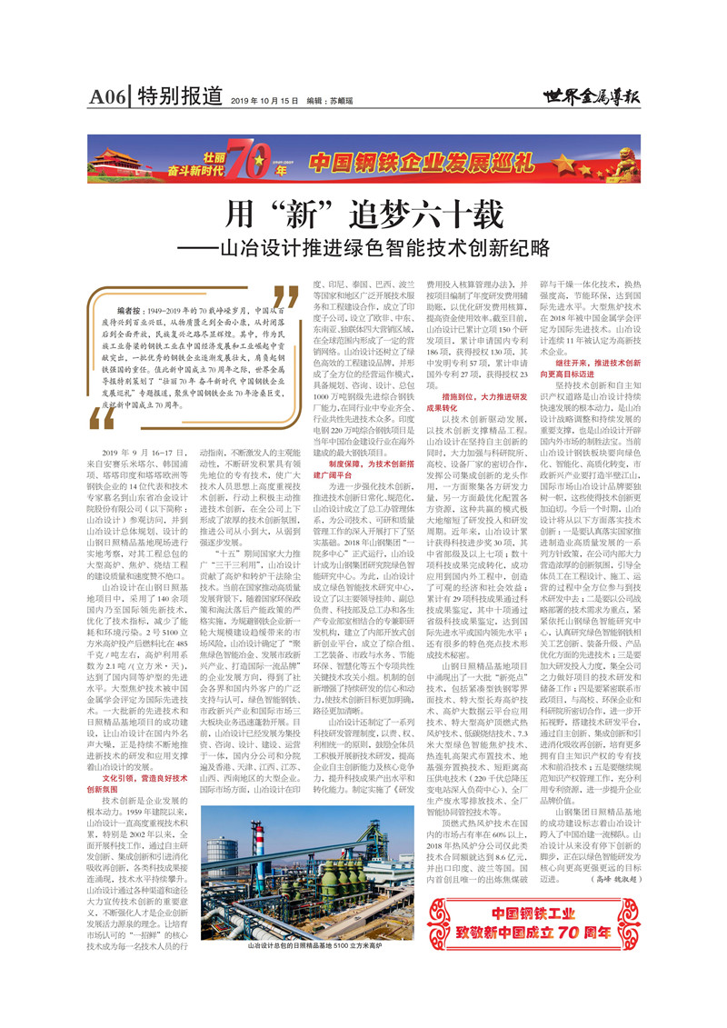 用“新”追夢(mèng)六十載——山東省冶金設(shè)計(jì)院股份有限公司推進(jìn)綠色智能技術(shù)創(chuàng)新戰(zhàn)略